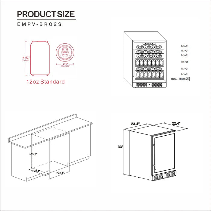 Empava 24 Inch Freestanding & Under Counter Beverage Fridge