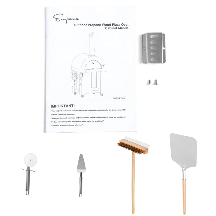 - All-in-One Oven Kit: Include 1 x Pizza oven,1 x pizza scraper,1 x pizza cutter,1 x pizza shovel,1 x pizza brush,4 x hooks and 1 x manual.